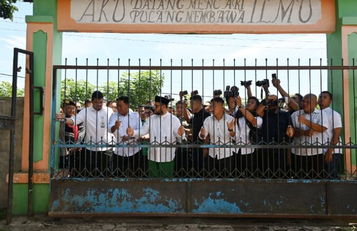 Usai pertemuan itu, Gubernur dan seluruh rombongan meninjau lokasi sekolah/madrasah. Sementara di depan gedung, para siswa dan orang tua sudah menunggu untuk meminta kepastian solusi atas sengketa ini.