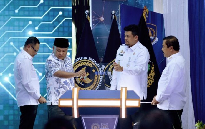 Gubernur Sumatera Utara (Sumut) Bobby Nasution bersama Menteri Imigrasi dan Pemasyarakatan (Imipas) Agus Andrianto meresmikan Autogate Imigrasi dan Lounge Pekerja Migran Indonesia (PMI) di Bandara Kualanamu, Kabupaten Deliserdang, Selasa (24/06/2025). Sekaligus peresmian Rudenim Medan, Rumah Dinas Jabatan Kanim Pematangsiantar, serta Penandatanganan Perjanjian Kerja Sama, Penyerahan Sertifikat Tanah, dan Surat Hibah.