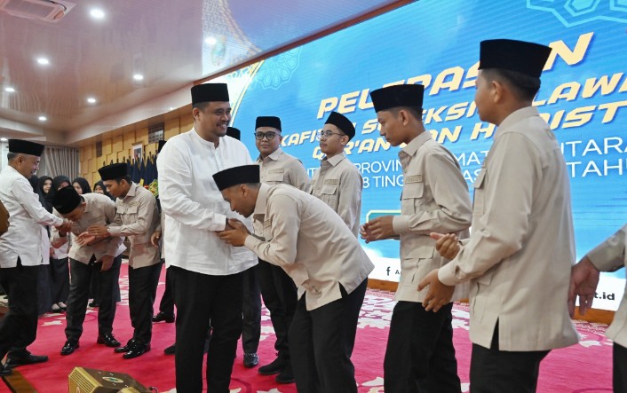 Gubernur Sumatera Utara (Sumut) Bobby Nasution secara resmi melepas keberangkatan Kafilah Sumut, yang akan bertanding di Seleksi Tilawatil Qur’an dan Hadits (STQH) ke-28 tingkat nasional di Kendari, Sulawesi Tenggara. Acara pelepasan berlangsung di Aula Tengku Rizal Nurdin, Jalan Sudirman No. 41 Medan, Selasa (07/10/2025) malam.