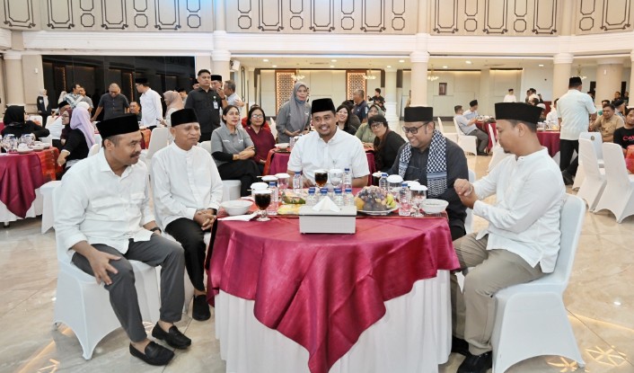 Gubernur Sumatera Utara (Sumut) Muhammad Bobby Afif Nasution menggelar buka puasa bersama insan pers di Aula Raja Inal Siregar, Kantor Gubernur Sumut, Selasa (17/03/2026). Dalam kesempatan tersebut, Bobby menekankan pentingnya kebebasan pers yang disertai tanggung jawab dan berlandaskan fakta.