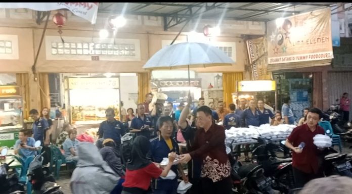 Di bawah derasnya hujan yang mengguyur Kota Medan, Hasyim SE, Ketua DPC PDI Perjuangan Kota Medan, tampak berbaur dengan warga sambil membagikan 750 paket makanan siap saji bergizi. Bersama Komunitas Wu Xing (5 Elemen), ia turun langsung ke lapangan tanpa ragu meski pakaian basah kuyup, menunjukkan kepedulian yang tulus kepada masyarakat kecil, Sabtu (18/10/2025).