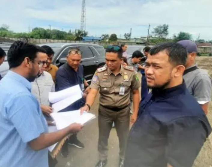 DPRD Medan minta stop pembangunan depo peti kemas di Sicanang itu saat bersama Pemkot Medan meninjau proyek pembangunan tersebut di Kelurahan Belawan Sicanang, Kecamatan Belawan, Selasa (04/11/2025).