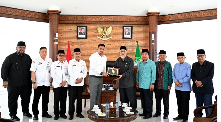 Gubernur Sumatera Utara (Sumut) Muhammad Bobby Afif Nasution menerima kunjungan Majelis Ulama Indonesia (MUI) Sumut di Anjungan Lantai 9 Kantor Gubernur Sumut, Jalan Pangeran Diponegoro Nomor 30 Medan, Rabu (5/11/2025). (Foto : Ist)