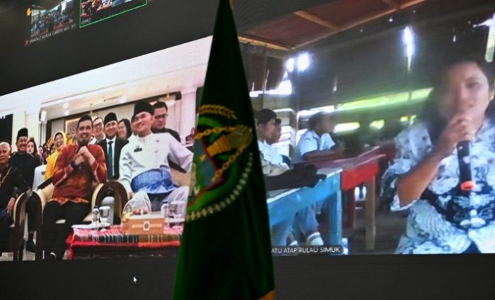 Gubernur Sumatera Utara (Sumut) Muhammad Bobby Afif Nasution didampingi Wakil Gubernur Surya dan Kadis Pendidikan Sumut Alexander Sinulingga saat Dialog Interaktif secara daring bersama Kepala Sekolah SMAN 1 Satu Atap Pulau Simuk, Nias Selatan, Velisia Laia, pada perayaan puncak Hari Guru Nasional 2025 di Aula Raja Inal Siregar, Kantor Gubernur Sumut Jalan Diponegoro 30, Medan, Selasa (25/11/2025). Pulau Simuk merupakan salah satu pulau terluar dan terpencil Sumut.(Foto : Ist)