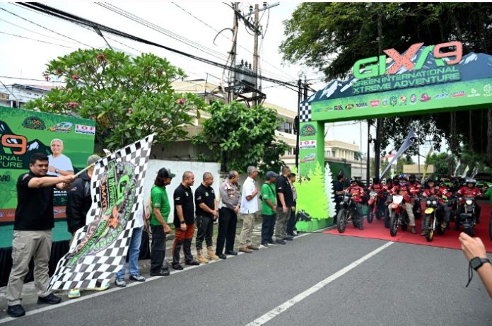 Gubernur Sumatera Utara (Sumut) Muhammad Bobby Afif Nasution, di dampingi Ketua Umum Xtrim Indonesia Musa Idishah beserta Ketua IOF Sumut Omen Matondang dan Ketua IMI Sumut Harun Mustafa Nasution beserta beberapa OPD, melepas peserta Green International Xtreme Adventure (GIXA) 2025 di Halaman Belakang, Kantor Gubernur Sumut, Sabtu (15/11/2025). (Foto : Ist)