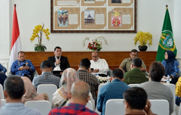 Pemerintah Provinsi Sumatera Utara (Sumut) melalui sejumlah Organisasi Perangkat Daerah Provinsi Sumut melakukan Konferensi Pers di Anjungan Dekranasda Kantor Gubernur Sumut Jalan Diponegoro Kota Medan, Rabu (17/9). Hal tersebut dilakukan terkait Sumut yang telah meraih predikat Universal Health Coverage (UHC).(Foto : Ist)