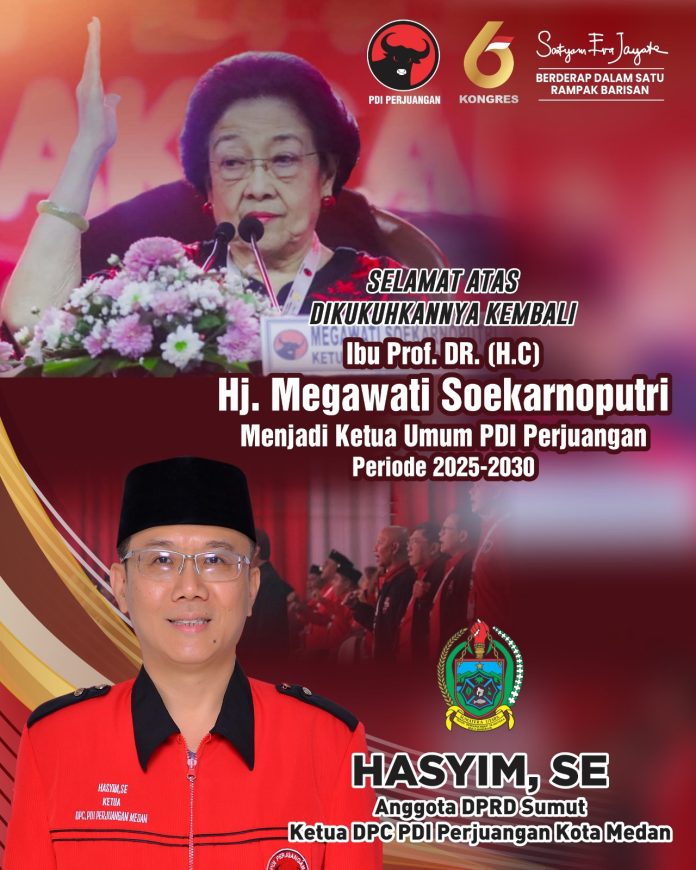 Hasyim SE : Selamat Kepada Ibu Prof. DR. (HC)., Hj. Megawati Soekarnoputri sebagai Ketua Umum PDI Perjuangan Periode 2025 – 2030.