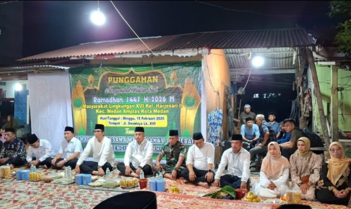Punggahan jelang bulan suci Ramadhan 1447 H di Jalan Swadaya, Lingkungan 16, Kelurahan Harjosari II, Kecamatan Medan Amplas, menjadi momen kebersamaan antara Wali Kota Medan Rico Tri Putra Bayu Waas dan warga, Minggu (15/02/2026) malam. Suasana hangat dan penuh kekeluargaan pun begitu terasa pada kegiatan yang digelar STM dan Perwiritan Ikhwanul Muslimin.