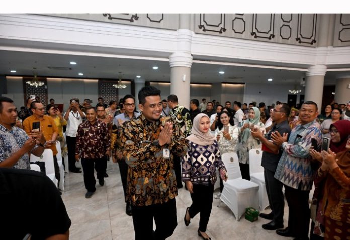Gubernur Sumatera Utara (Sumut) M.Bobby Afif Nasution membuka acara Focus Group Discussion (FGD) Penetapan 5 Hari Sekolah di Sumut di Aula Raja Inal Siregar Kantor Gubernur Sumut, Jalan Diponegoro 30 Medan, (3/7/2025).