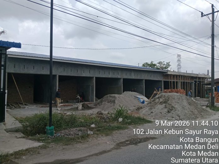 Sebagaimana pantauan langsung Media di jalan Kebun Sayur Raya Kelurahan Kota Bangun Kecamatan Medan Deli, pembangunan 8 unit rumah. Dimana terlihat jelas bangunan sudah hampir 70% rampung.