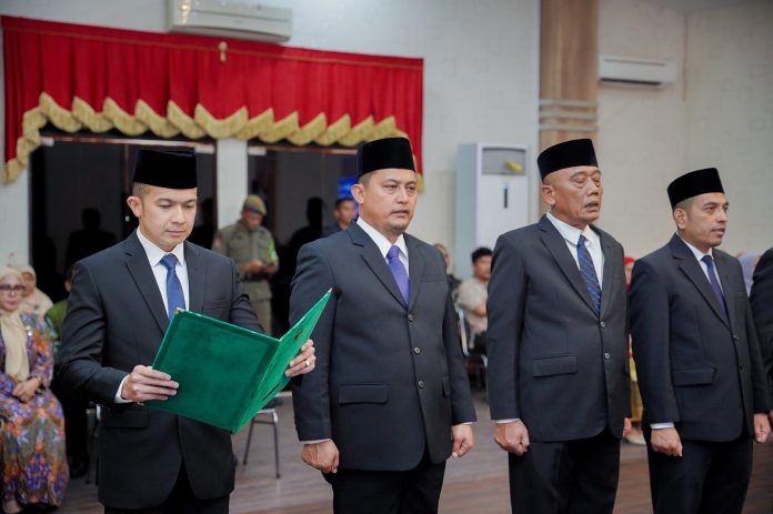 Wali Kota Medan Rico Tri Putra Bayu Waas melantik dan mengambil sumpah janji jabatan sebanyak 9 orang Pejabat Pimpinan Tinggi Pratama di lingkungan Pemko Medan, Kamis (21/08/2025). Dalam pelantikan yang dilaksanakan di Ruang Rapat III Balai Kota, orang nomor satu di Pemko Medan ini menegaskan, jabatan yang diamanahkan bukan sekadar kebahagiaan, tapi tentang tanggung jawab.