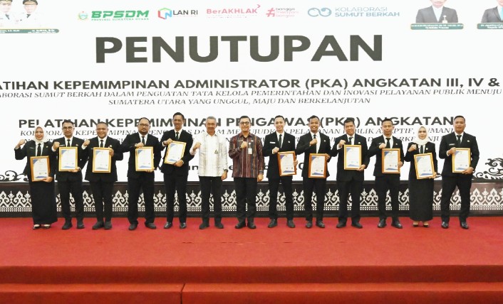 Penjabat (Pj) Sekretaris Daerah Provinsi (Sekdaprov) Sumatera Utara (Sumut) Sulaiman Harahap menekankan tiga tugas utama yang harus dimiliki setiap pemimpin, yaitu manajerial, kepemimpinan (leadership), dan inovatif. Hal itu disampaikannya saat menutup Pelatihan Kepemimpinan Administrator (PKA) Angkatan III, IV, dan V serta Pelatihan Kepemimpinan Pengawas (PKP) Angkatan I di Aula BPSDM Sumut, Jalan Ngalengko, Medan, Jumat (05/12/2025).