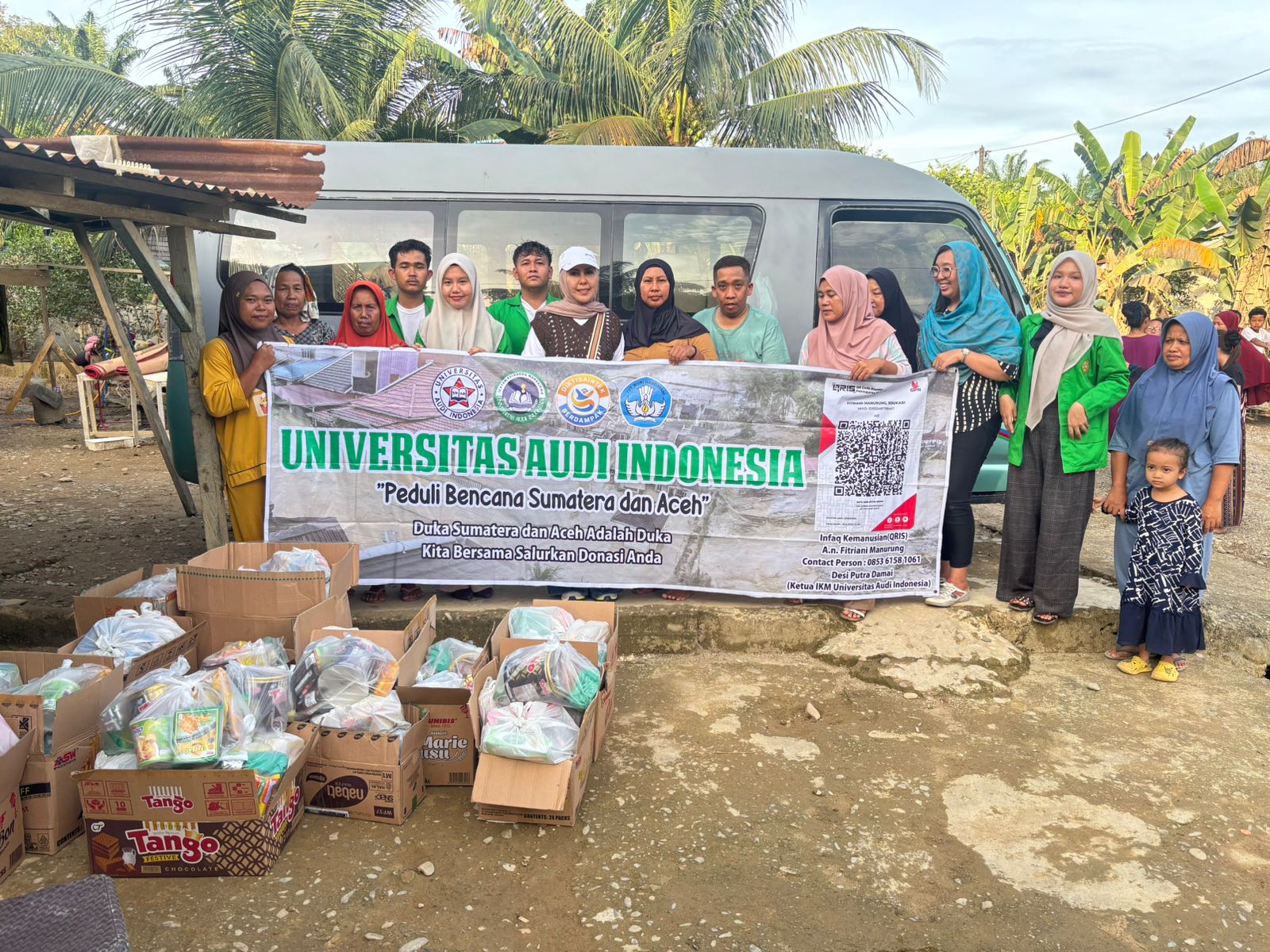 Bantuan tersebut merupakan hasil donasi yang dihimpun dari Ketua Yayasan Audi Husada, Rektor Universitas Audi Indonesia, tenaga pengajar, mahasiswa, alumni, serta masyarakat yang turut berpartisipasi dalam aksi solidaritas kemanusiaan. Donasi disalurkan langsung kepada masyarakat terdampak, termasuk salah satunya alumni Universitas Audi Indonesia yang ikut menjadi korban bencana alam tersebut.
