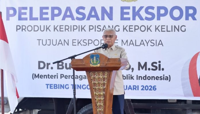 Hal tersebut disampaikan Wagub Sumut Surya pada Pelepasan Ekspor Pisang Kepok Keling ke Malaysia dan Peresmian Pusat Konveksi Pasar Kain di Pasar Baru Tebingtinggi, Kota Tebingtinggi, Jumat (27/2/2026).