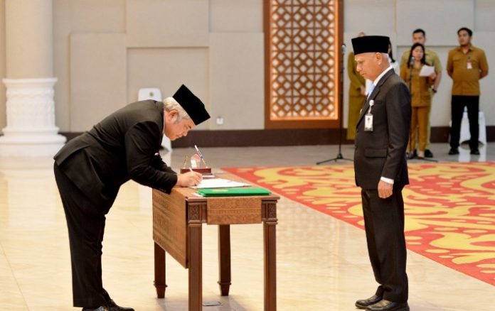 Wakil Gubernur Sumatera Utara (Sumut) Surya melantik dan melakukan pengambilan sumpah Jabatan Pimpinan Tinggi Pratama dan Administrator pada lingkungan Pemerintah Provinsi Sumut di Aula Raja Inal Siregar Lantai 2 Kantor Gubernur Sumut Jalan Diponegoro Kota Medan, Senin (08/09/2025) (Foto : Ist).