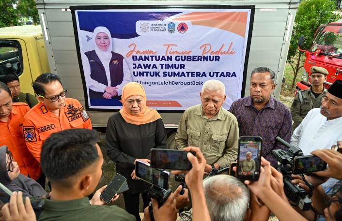 Khofifah menambahkan, logistik dari masyarakat Jawa Timur juga terus berdatangan dan saat ini pihaknya sedang menyiapkan kapal untuk mengangkut kebutuhan tersebut ke Sumut. Bantuan tahap awal mencakup kebutuhan mendesak seperti makanan, obat-obatan, tenda, perlengkapan rumah tangga, serta materi lain yang dibutuhkan untuk membantu pemulihan para korban.