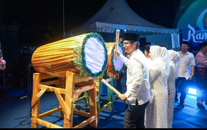 Tabuhan bedug oleh Wali Kota Medan, Rico Tri Putra Bayu Waas menjadi penanda diresmikannya gelaran Ramadhan Fair XX, di Taman Sri Deli Medan, Rabu (25/2/2026) malam.